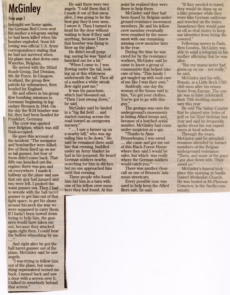 7 Amanda Freudensprung, “Bill McGinley U.S. Army, World War II – Part II of II,” Saline Courier, Date Unknown. Newspaper clipping.
