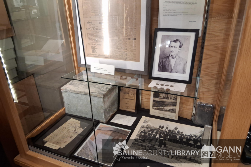 At the Gann Museum, there’s an issue of the Times-Courier from September 18, 1902, on display. It and several other things were placed in a galvanized metal box that was put inside the Saline County Courthouse’s cornerstone when the building was built. The cornerstone time capsule was opened in 1994 and donated to the museum the following year. Also in the exhibit is a picture of W. A. Webber, the founder of the Saline County Digest in 1876.